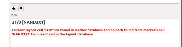 Discrepancies can arise from cell names depending on the "Context" mode in "configuration" - some modes like "Marker database top cell" require cell names to match. In this case, the complaint is shown this way: