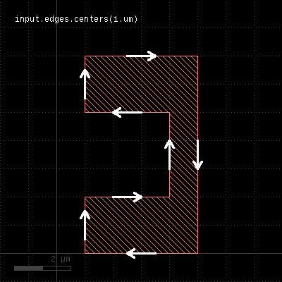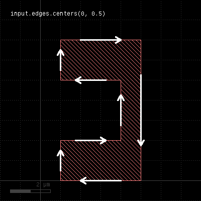 The return value is a DBox object giving the bounding box in micrometer units. "centers" - Returns the center parts of the edgesUsage: