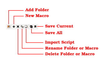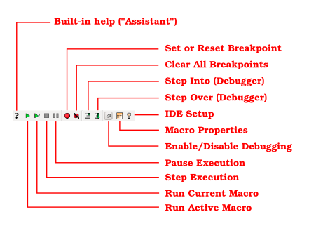 The editor panel features a toolbar with several tool buttons. The following image shows the toolbar and the buttons with their function: