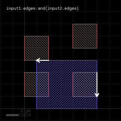 This method is available for polygon and edge layers. If the first operand is an edge layer and the second is a polygon layer, the result will be the edges of the first operand which are inside or on the borders of the polygons of the second operand.