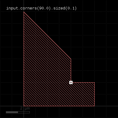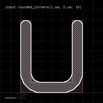 This method return a layer wit the modified polygons. Merged semantics applies for this method (see raw and clean). If used with tiling, the rounded_corners function may render invalid results because in tiling mode, not the whole merged region may be captured. In that case, inner edges may appear as outer ones and their corners will receive rounding.