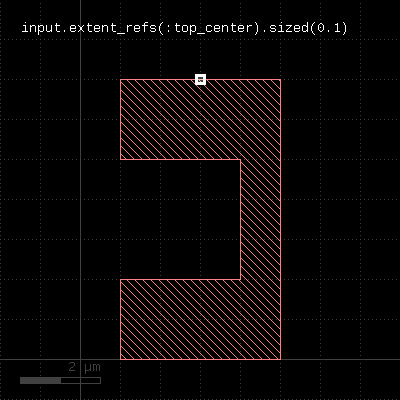 This method can be applied to original layers - i.e. ones that have been created with input. By default, a small box (2x2 DBU) will be produced on each selected text. By using the "as_dots" option, degenerated point-like edges will be produced.