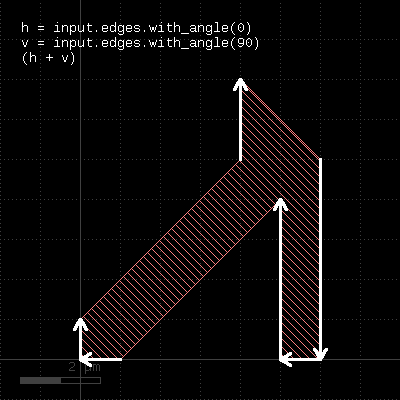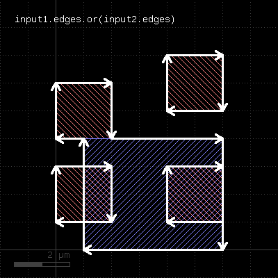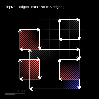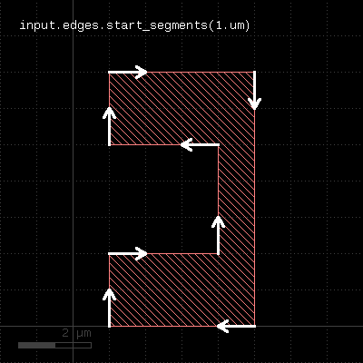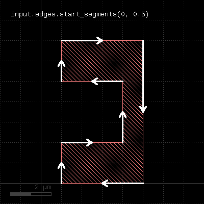 Edge pair collections are decomposed into the individual edges that make up the edge pairs. Polygon layers are decomposed into the edges making up the polygons. This method returns an edge layer but will not modify the layer it is called on.