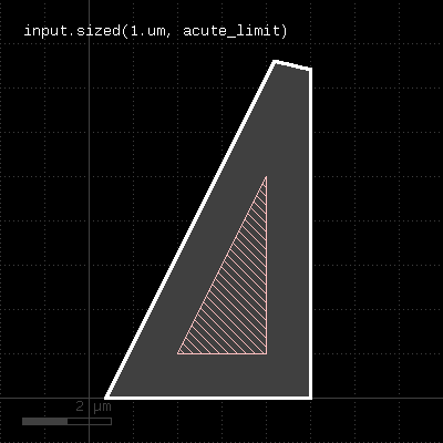 Note that without the angle_limit, acute corners will always be reported, since two connected edges always violate the width in the corner. By adjusting the angle_limit, an acute corner check can be implemented.