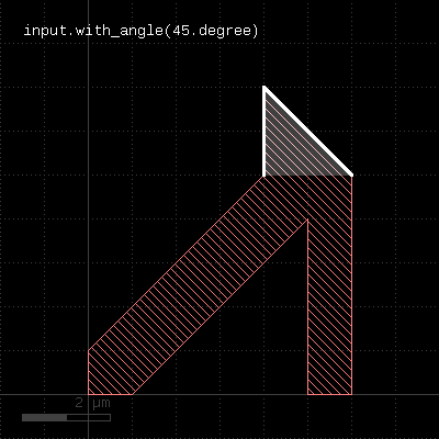 The method basically is the inverse of with_angle. It selects all edges of the edge layer or corners of the polygons which do not have the given angle (second form) or whose angle is not inside the given interval (first and third form).