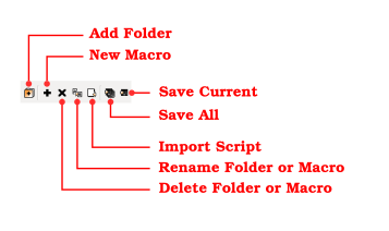 To run the macro, press the "Run current script" or the "Run script from the current tab" button in the editor panel. "Run current" will run the script that was run the last time, irregardless if the script is the one currently shown in the editor panel. That way, it is possible to run the same script while editing support files for example. "Run script from the current tab" will always run the script from the current tab.