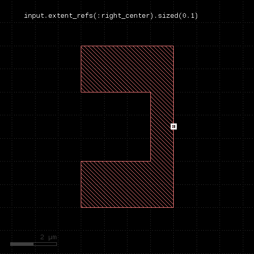 # at least one edge needs to have a length of 1.0 <= l < 2.0 ep1 = edge_pairs.with_length(1.um .. 2.um) # both edges need to have a length of exactly 2 um ep2 = edge_pairs.with_length(2.um, both)