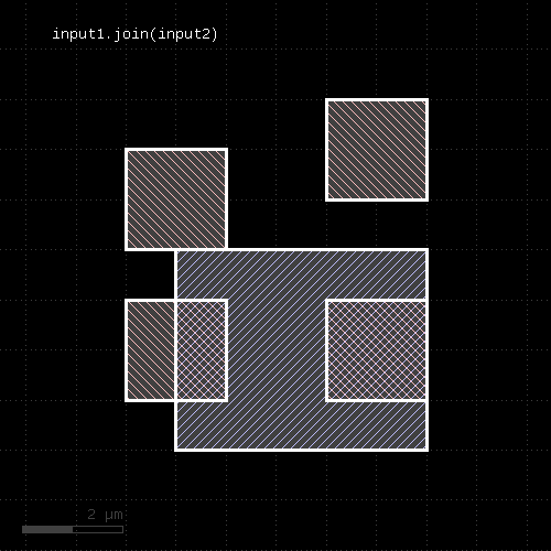 This method is available for polygon, edge and edge pair layers. An alias is "join". See there for a description of the function.