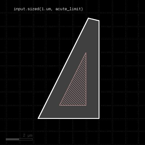 Note that without the angle_limit, acute corners will always be reported, since two connected edges always violate the width in the corner. By adjusting the angle_limit, an acute corner check can be implemented.