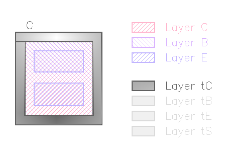 If the collector region is empty (e.g. p substrate), the base shape is copied to the "tC" output layer for the collector terminal.