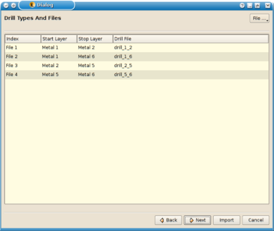 - Specify file names for the drill files and what metal layers are connected by the (plated) drill holes. Since a drill hole