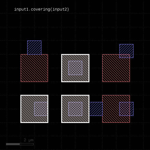 This method selects all shapes or regions from self which completly cover shapes from the other region. Unless self is in raw mode (see raw), coherent regions are selected from self, otherwise individual shapes are selected. It returns a new layer containing the selected shapes. A version which modifies self is select_covering.