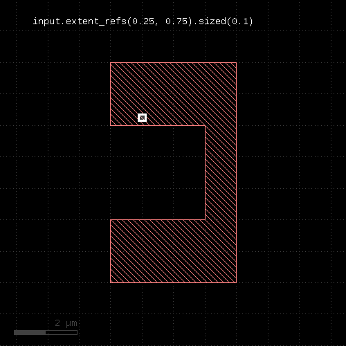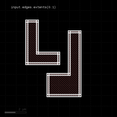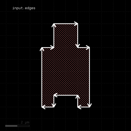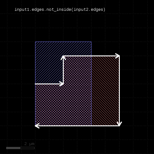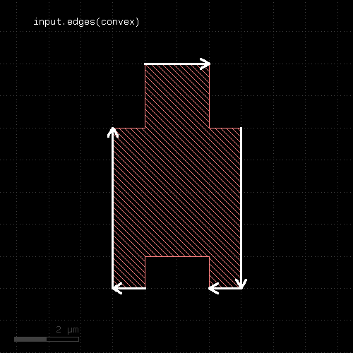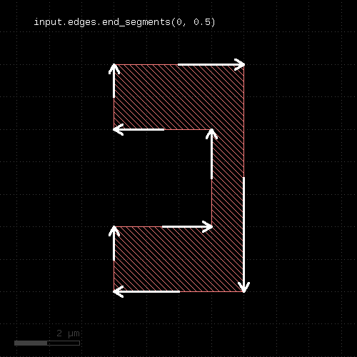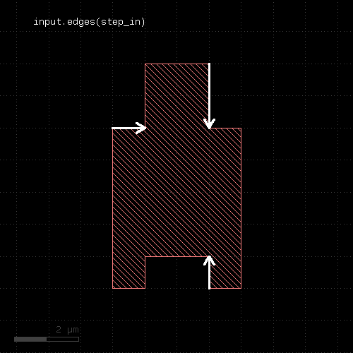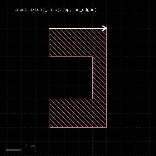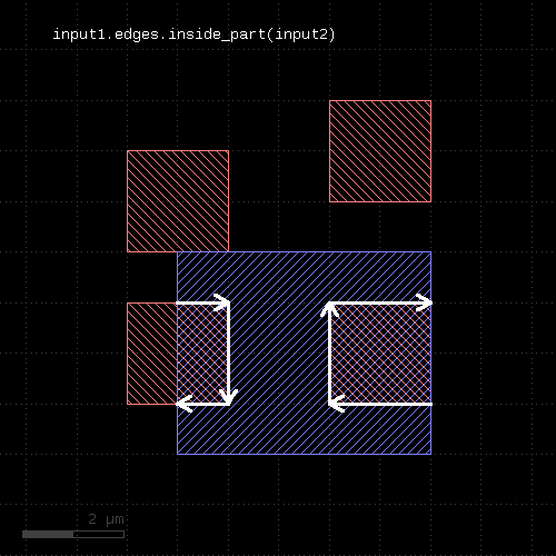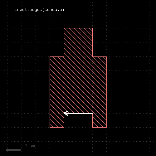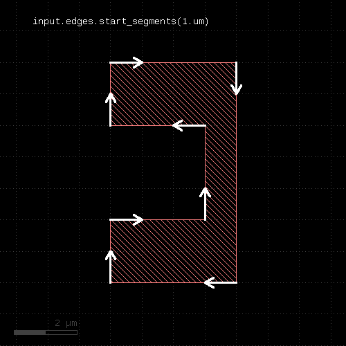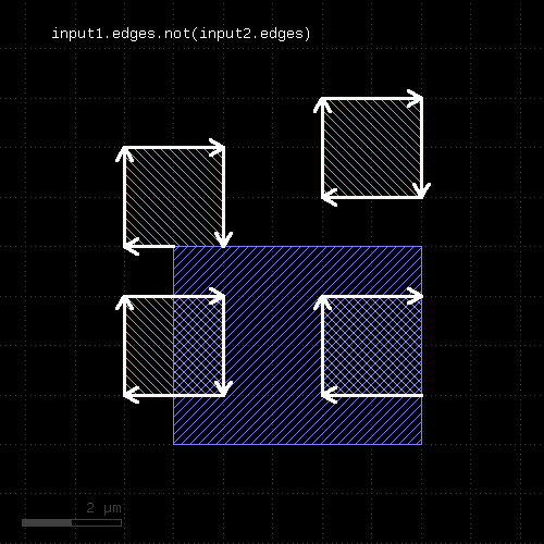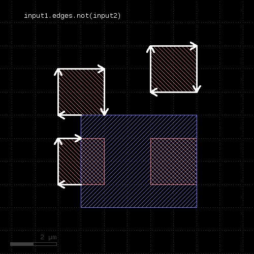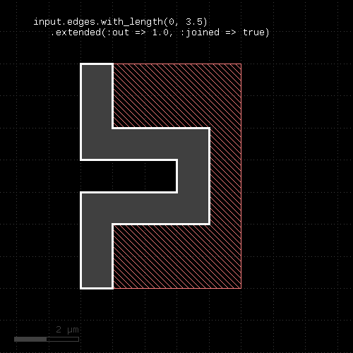 # at least one edge needs to have a length of 1.0 <= l < 2.0 ep1 = edge_pairs.with_length(1.um .. 2.um) # both edges need to have a length of exactly 2 um ep2 = edge_pairs.with_length(2.um, both)