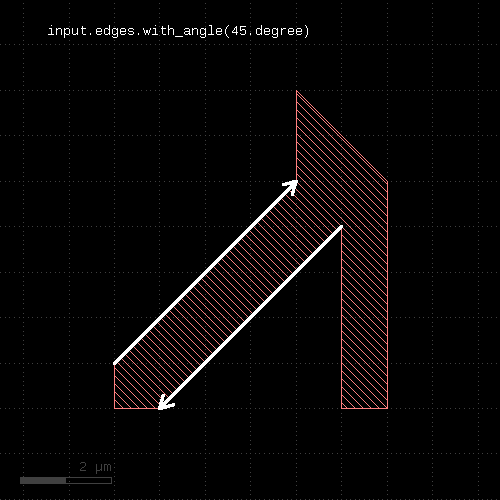 # selects edge pairs with parallel edges ep1 = edge_pairs.with_internal_angle(0) # selects edge pairs with perpendicular edges ep2 = edge_pairs.with_internal_angle(90)