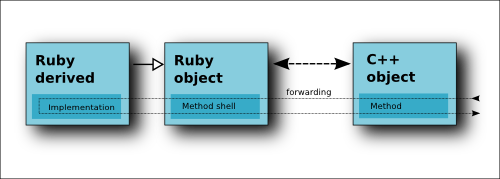 While that operation is simple in theory there are some pitfalls when implementing that scheme. One of them is the inherent compatibility issue between C++ and Ruby's lifetime management. In Ruby, the interpreter knows about all references to a Ruby object. When there are no more references to an object, the object is marked as "no longer used" and deleted. In other words: as long as any reference exists, the object is valid and a reference will never become invalid.