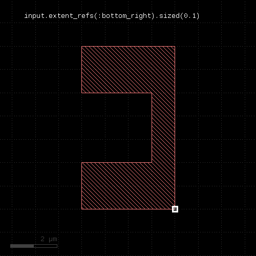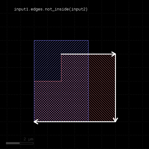 # at least one edge needs to have a length of 1.0 <= l < 2.0 ep1 = edge_pairs.with_length(1.um .. 2.um) # both edges need to have a length of exactly 2 um ep2 = edge_pairs.with_length(2.um, both)