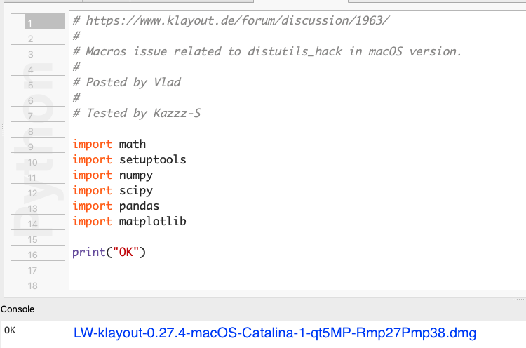 I had an issue running any macros in KLayout (even the one, which are built-in).
