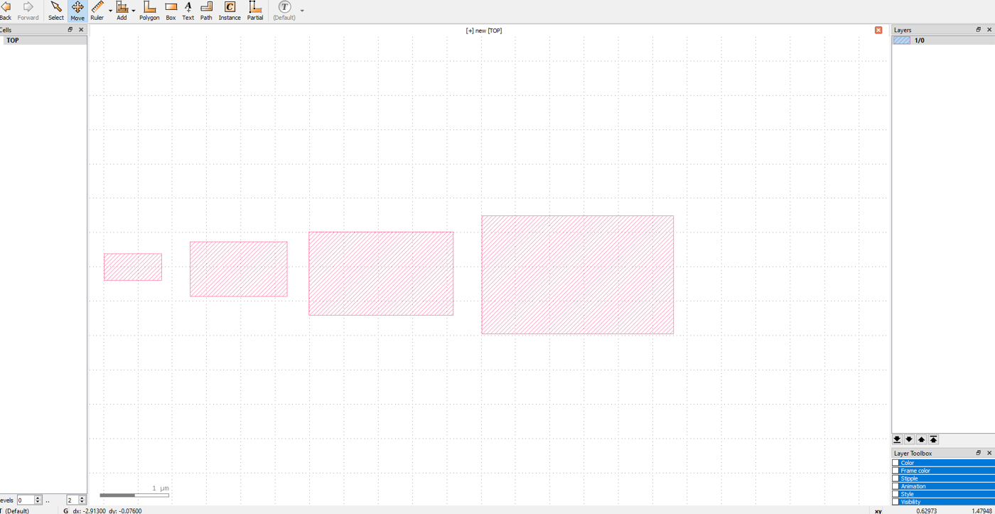 I'm very new to Python language and KLayout. For a project, I need to generate a series of rectangles (each in the same or different layers) in KLayout using Macro development. This way, depending on the input/variable assignment from the user, say N, the program can generate N Rectangles and height and width can be adjusted for one rectangle and others will increase or decrease by a magnification factor. Pitch can be adjusted too. Please help me with this. A picture is added here.