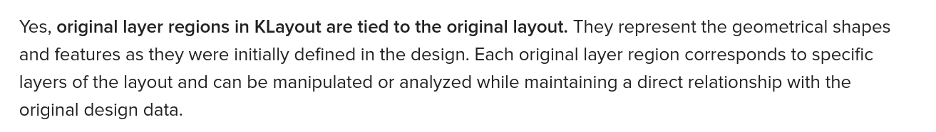 But if you're changing the layout, the original data will change and hence the Region. To mitigate that, KLayout would need to keep a list of Region object clients and inform them about a change in the Layout. That means additional bookkeeping, servicing callbacks, managing clients (thread-safe preferably) etc. This adds overhead to the database design.