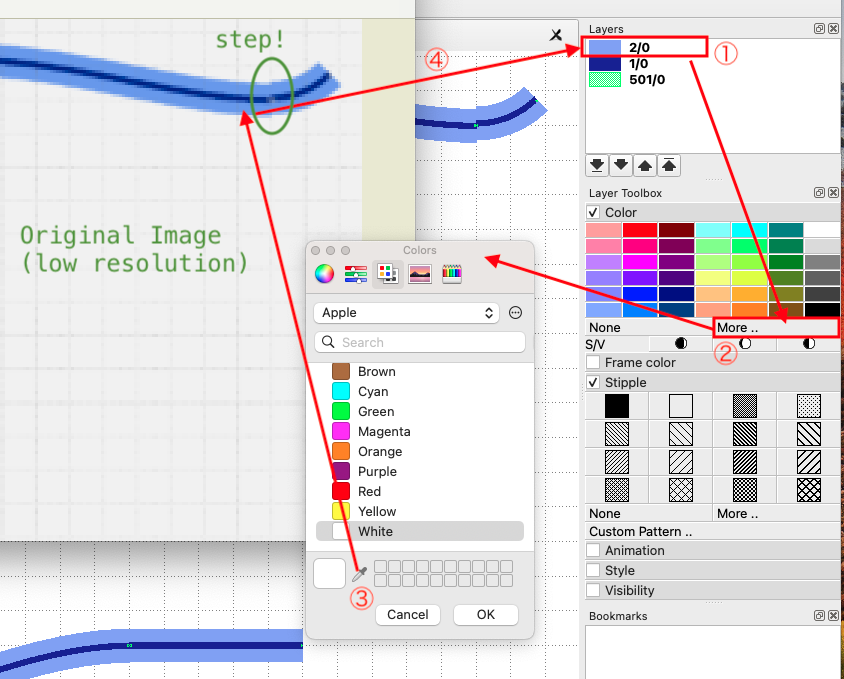 In the original low-resolution image at https://nazca-design.org/parametric-curve/, I can see steps!