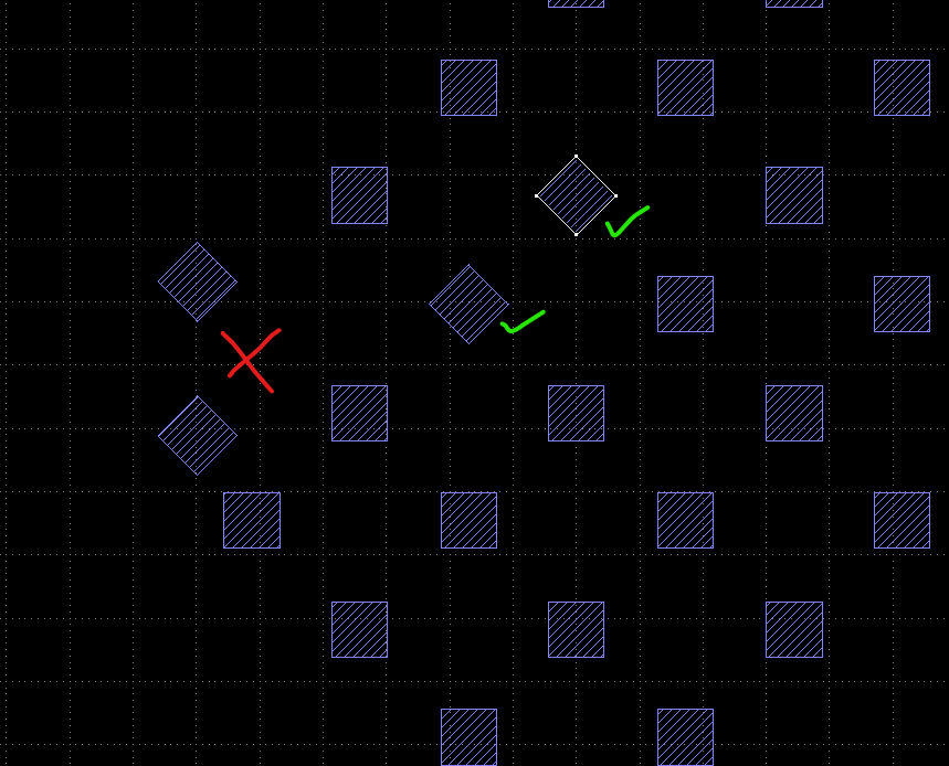 Practically saying I want to rotate tons of diamond shapes into orthogonal shapes, but the shape itself should remain in its position.