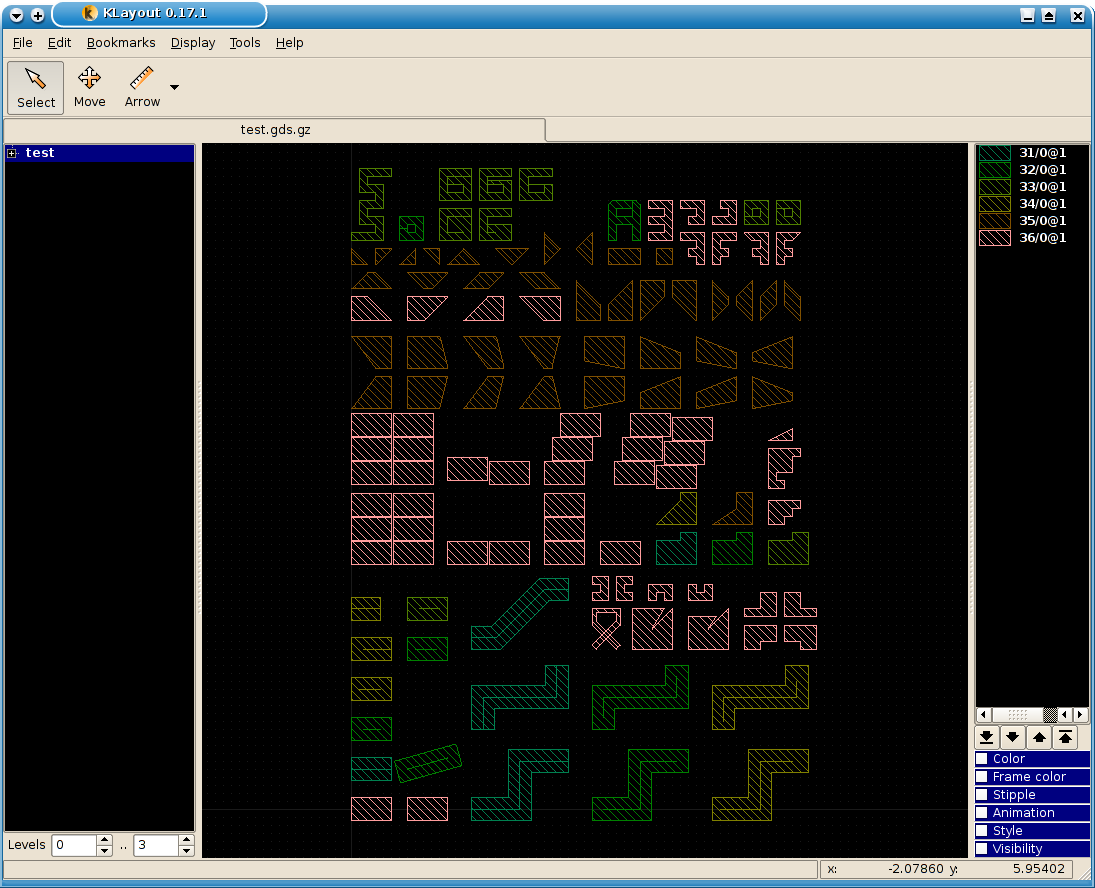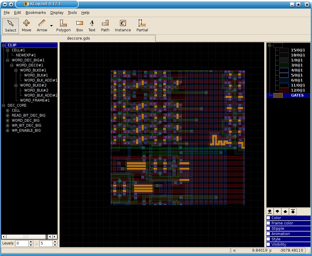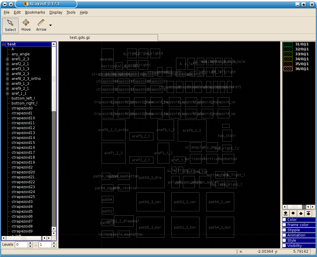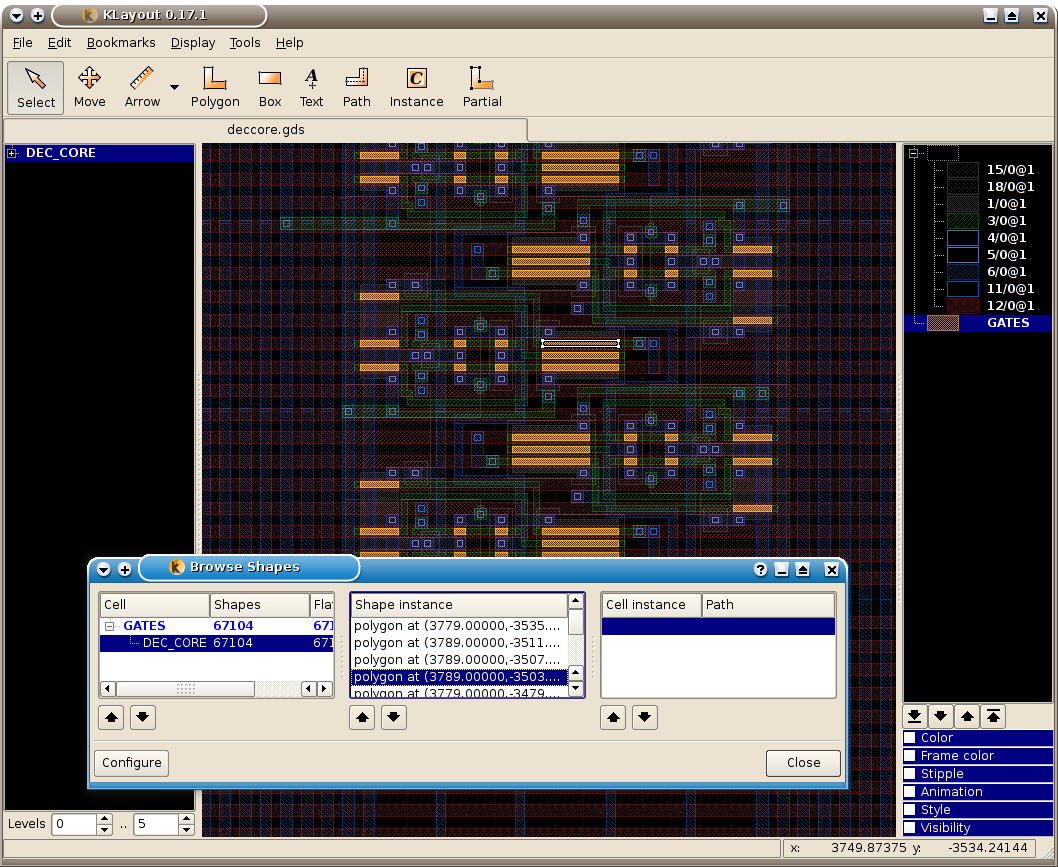 This example shows how PCB data imported into KLayout and the navigator which displays an overview.