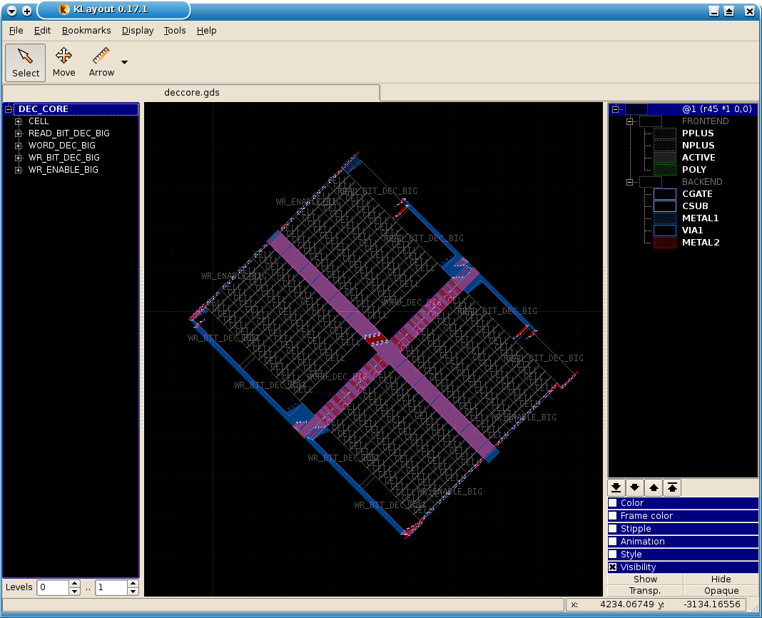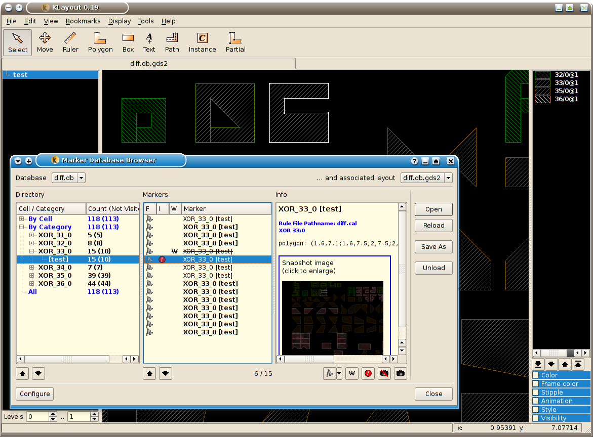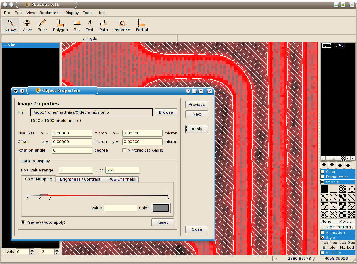 This example shows how PCB data imported into KLayout and the navigator which displays an overview.