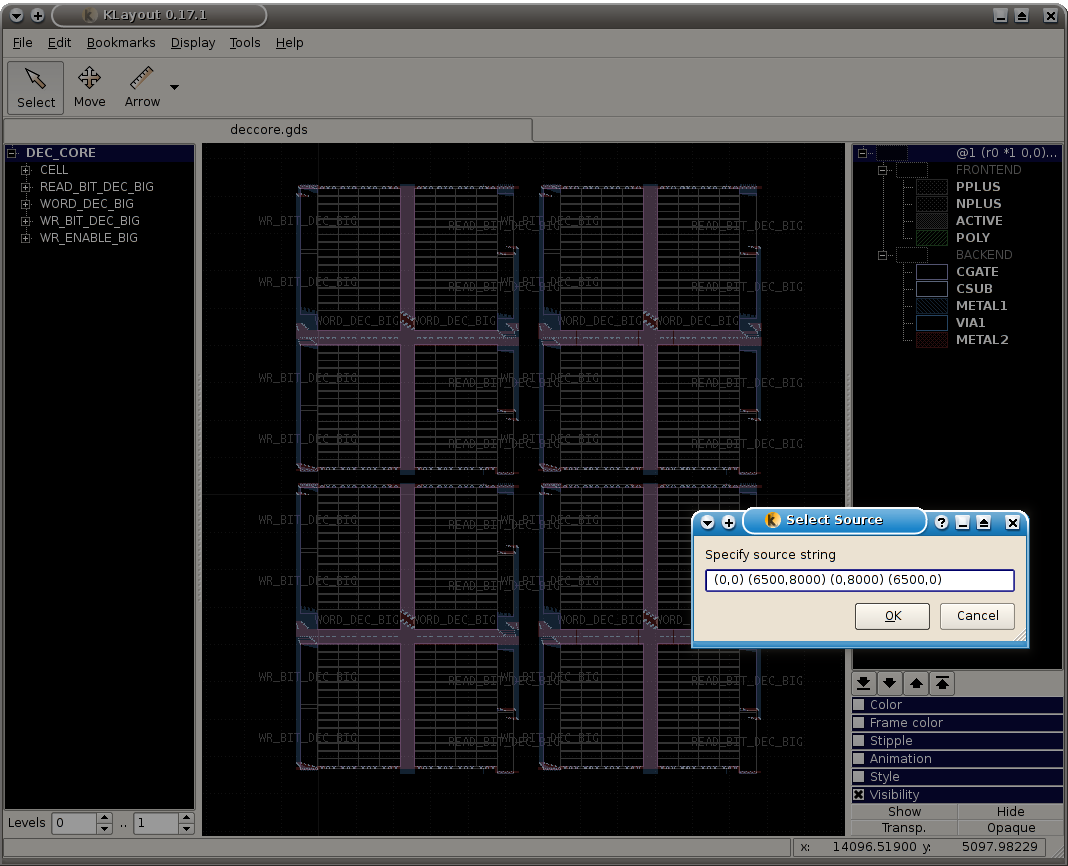 The clip utility clips out a rectangular region of a layout in a hierarchical fashion: