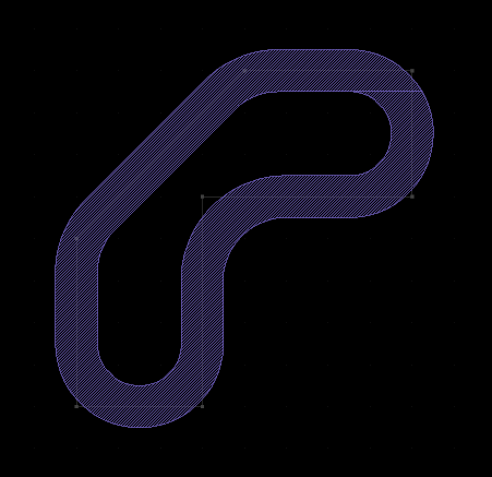 The PCell features two parameters that define the radius and width of the "rim" line. The polygon or box itself can be manipulated as usual. Polygon, box or path objects can be converted to STROKED_POLYGON or STROKED_BOX pcells. In that case, the initial radius will be zero. The width of the rim line will be choosen to be roughly 10 percent of the minimum bounding box dimensions of the original polygon. For STROKED_BOX, the bounding box of the original shape will be used as the basic shape. |