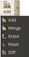 - Add: this is the default mode: the drawn shape will simply be added to the