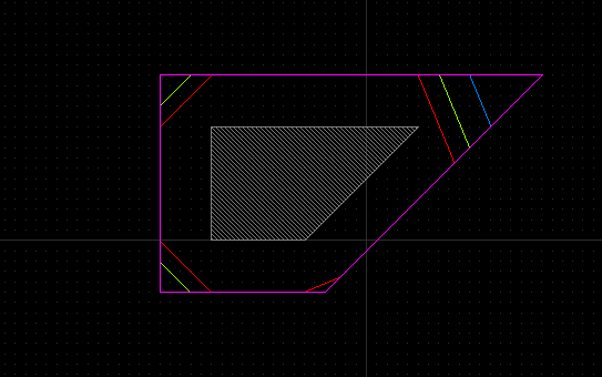 Layer SizingA sizing operation allows growing or shrinking of the shapes of a layer by a given offset, which is applied per edge. Positive values will enlarge the shapes while negative values will shrink the shapes. The offset can be given separately for horizontal and vertical direction. However, the sign of both values must be identical (i.e. "0.5,0" or "1.0,0.2", but not "0.2,-0.2"). The sizing function can be found in the "Layers" submenu of the "Edit" menu. A dialog will open that allows specification of input and output layers, sizing value in micron: a single value for same sizing in x and y direction or comma-separated list of two values (i.e. "0.2,0.1"). As for the boolean operations, hierarchical mode and kissing corner resolution can be specified (see Layer Boolean Operations for a description of these modes). In addition, the cutoff strategy for sharp edges can be chosen from strict to virtually unlimited. The following screenshot demonstrates the effect for "strict" (red) to "weak" (purple) cutoff modes.