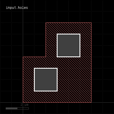 Applies to edge pair collections only. Returns the first edges of the edge pairs in the collection. "holes" - Selects all polygon holes from the inputUsage: