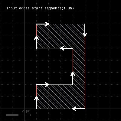 This method requires a polygon layer. It returns the total perimeter of all polygons in micron. Merged semantics applies, i.e. before computing the perimeter, the polygons are merged unless raw mode is chosen (see raw). The returned value gives the perimeter in micrometer units. "polygons" - Returns polygons from edge pairsUsage: